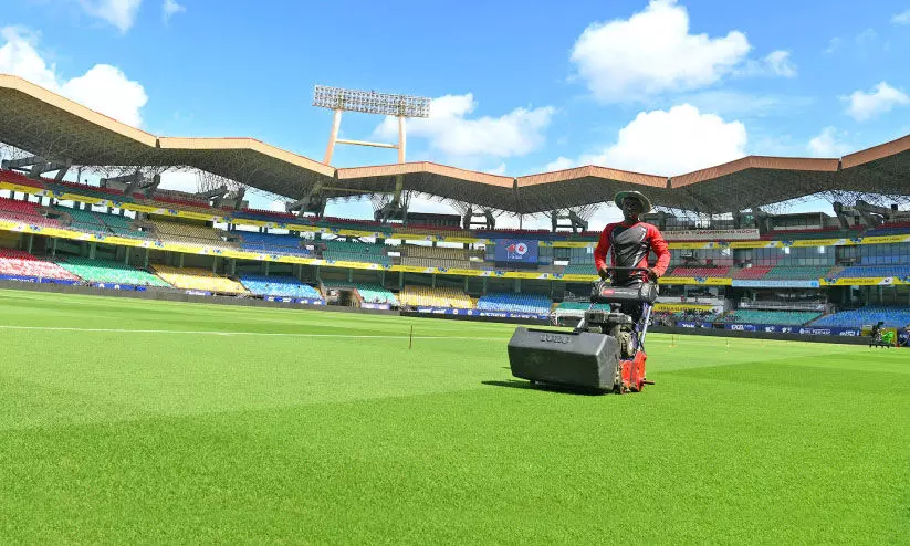 text_fieldsഐ.എസ്.എൽ ഉദ്ഘാടന മത്സരം നടക്കുന്ന കൊച്ചി ജവഹർലാൽ നെഹ്റു സ്റ്റേഡിയത്തിൽ ഗ്രൗണ്ട് ഒരുക്കുന്നു