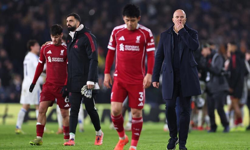 ലീഡ്സിൽ സമനില തെറ്റി ലിവർപൂൾ; പരീക്ഷണങ്ങൾ പാളി കോച്ച് സ്ലോട്ട്; മൂന്ന് ഗോളടിച്ചിട്ടും സമനില