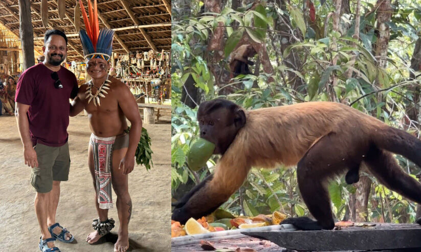 കാടിനുള്ളിൽ ഓരോ ദിവസവും ഒരു പുതിയ ലോകം. പകൽ സമയങ്ങളിൽ ഇലകളുടെ മുകളിലൂടെ ചോരുന്ന സൂര്യപ്രകാശം നിലത്തേക്ക് അരിച്ചിറങ്ങുന്നു. കാട്ടിലൂടെ വിദഗ്ധനായ ഒരു ഗൈഡിന്റെ സഹായത്തോടെ പല സ്ഥലങ്ങളും അറിഞ്ഞും കണ്ടും കറങ്ങിനടന്നു മനസിലാക്കി. ഓരോ ശബ്ദവും ഭയത്തേക്കാളേറെ ജാഗ്രതയാണ് പഠിപ്പിക്കുന്നത്. ആമസോണിലെ ആദിവാസി ഗോത്രങ്ങളോടൊപ്പം ചിലവഴിച്ചത്, യാത്രയിലെ ഏറ്റവും വ്യത്യസ്തമായ അനുഭവങ്ങളിൽ ഒന്നായിരുന്നു. അവരുടെ വീടുകൾ ലളിതമാണ്, പക്ഷേ ജീവിതം അവർക്കു സ്വച്ഛവും സമ്പൂർണ്ണവും. ആദിവാസി കുടിലുകളിലെ ജീവിതം കണ്ടപ്പോൾ, അത്ഭുതപ്പെടുത്തിയത് അവരുടെ ഭക്ഷണസംസ്കാരമാണ്. അടുക്കളയെന്ന് വിളിക്കാൻ പ്രത്യേക മുറിയില്ല, കാട് തന്നെയാണ് അവരുടെ അടുക്കള. അവർ ഒരുക്കുന്ന വിഭവങ്ങളിൽ, ചിതൽ വറുത്തത് പോലുള്ള ഭക്ഷണങ്ങൾ ഉണ്ടായിരുന്നു. ആദ്യം കാണുമ്പോൾ മനസ്സ് അല്പം പിന്നോട്ടു പോയി. നഗരജീവിതത്തിൽ വളർന്ന ഒരാൾക്ക്, അത് വെറും ഭക്ഷണമല്ല - സാംസ്കാരികമായ ഒരു അതിർത്തിയാണ്. അതുപോലെ തന്നെ, ഉറുമ്പുകളെ ഉപയോഗിച്ചുണ്ടാക്കുന്ന ചില തോരൻ പോലുള്ള വിഭവങ്ങളും അവിടെ കണ്ടു. ചെറിയതും ലളിതവുമായ ചേരുവകൾ, പക്ഷേ അവയ്ക്കുപിന്നിൽ തലമുറകളുടെ അറിവുണ്ട്. അവിടെ മറ്റൊരു ജീവിവർഗവും ഉണ്ടായിരുന്നു ചെറിയ മുതലകുഞ്ഞുങ്ങളെ ഓർമിപ്പിക്കുന്ന രൂപമുള്ള ഒരു ജീവി. അതിനെയും കനലിൽ ചുട്ടു കഴിക്കാൻ വെച്ചിരിക്കുന്നുണ്ടായിരുന്നു. കാടിനുള്ളിൽ ഇതെല്ലാം സാധാരണമായ ഒന്നാണത്, പക്ഷേ പുറത്തുള്ള ലോകത്തിന് അത്ഭുതം.