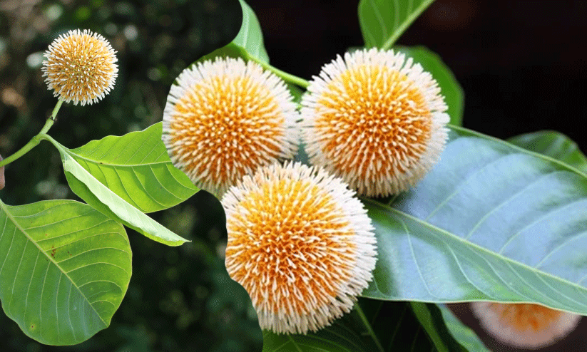ഏപ്രിൽ മുതൽ ആഗസ്റ്റ് വരെയാണ് പൂക്കാലം. ഗോളാകൃതിയുള്ള, 2-4.5 സെ. മീറ്റർ വ്യാസമുള്ള ‘ശിരസ്സി’ലാണ് (മുണ്ഡമഞ്ജരി -head Inflorescences) പൂക്കൾ ഉണ്ടാകുന്നത്. ഓറഞ്ച് നിറമുള്ള പൂക്കൾക്ക് നേരിയ സുഗന്ധമുണ്ട്. ബാഹ്യദളപുടത്തിനു കുഴലിന്റെ ആകൃതി. അഞ്ച് സംയുക്ത ദളങ്ങൾ.കേസരങ്ങൾ അഞ്ച്. വർത്തികാഗ്രവും വർത്തികയും വെള്ളയാണ്. അണ്ഡാശയത്തിനു രണ്ട് അറകൾ. ജൂലൈ-ഒക്ടോബർ മാസങ്ങളിൽ കായ്കൾ പാകമാകുന്നു.
