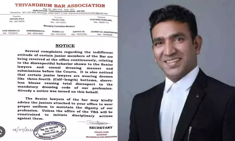 തിരുവനന്തപുരം ബാർ അസോസിയേഷന്റെ നോട്ടീസ്,യുവ അഭിഭാഷകയെ മർദിെച്ചന്ന കേസിൽ അറസ്റ്റിലായ ബെയ്ലിൻ ദാസ്