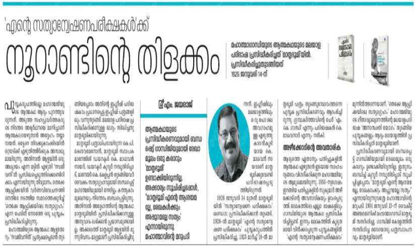 ‘‘ ‘എന്റെ സത്യാന്വേഷണ പരീക്ഷകൾ’ക്ക് നൂറാണ്ടിന്റെ തിളക്കം.’’