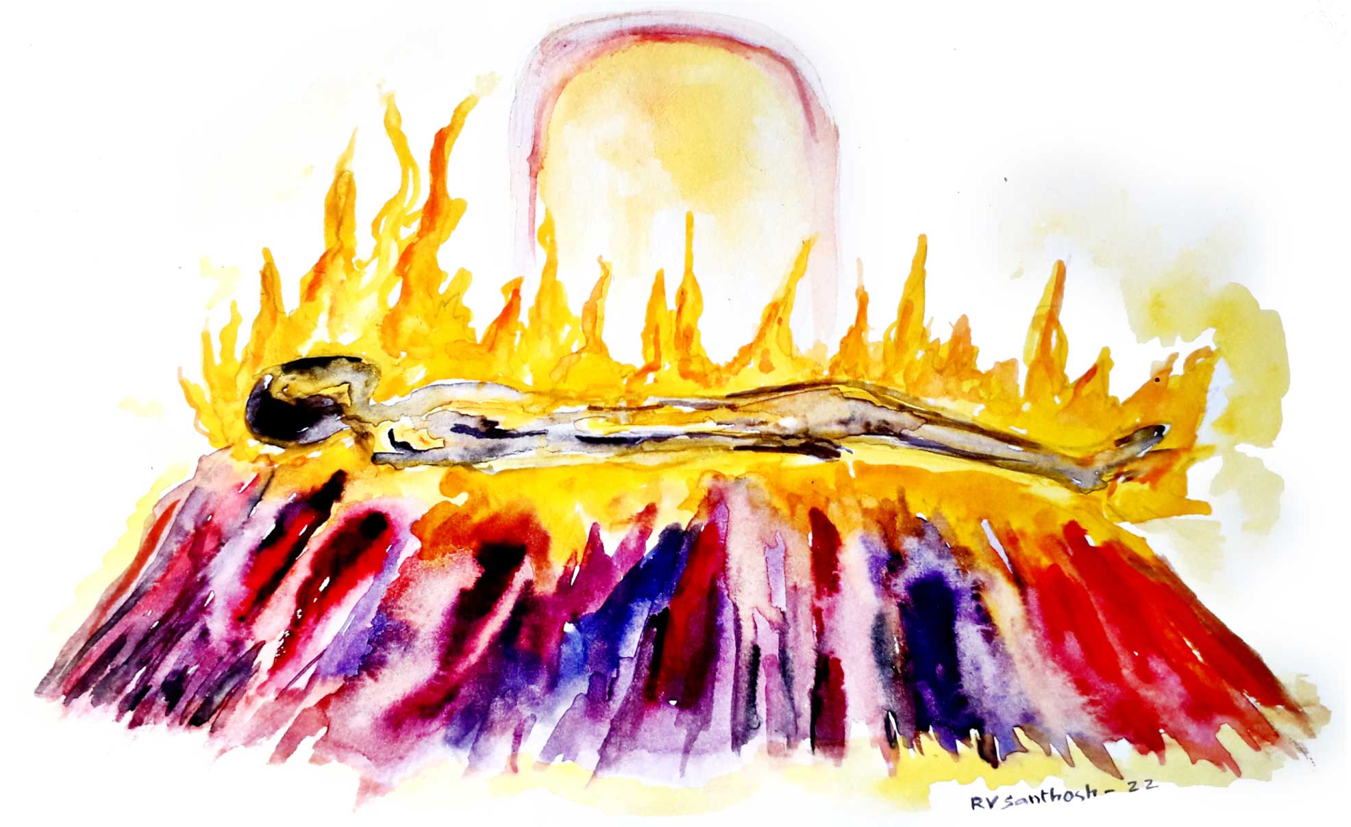 ശവത്തിനോളം നാറ്റമുള്ളതൊന്നും നാട്ടിലില്ല. അതുകൊണ്ട് തന്നെ ശവം വേഗത്തിലടക്കണം. സഹായി മുറംകൊണ്ട് ആഞ്ഞു വീശി. എണ്ണയും നെയ്യും ചേർന്നുരുകി. മണം പരന്നു.