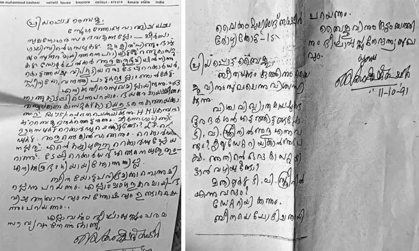 ബഷീറും കുടുംബവുമായി ഒരുപാട് അടുക്കാനും പിന്നീട് ആ വീട്ടിൽ എത്രയോ വട്ടം പോകാനുമൊക്കെ കാരണക്കാരി എന്റെ ജീവിതപങ്കാളിയും എഴുത്തുകാരിയുമായ കെ.എ. ബീനയാണ്. ബീന മാധ്യമവിദ്യാർഥിയായിരിക്കുമ്പോൾ ചെയ്ത ഒരു പ്രോജക്ടിനുവേണ്ടി ബഷീറിന് കത്തെഴുതിയതോടെയാണ് തുടക്കം. കെ. ബാലകൃഷ്ണനും ‘കൗമുദി’ വാരികയും മലയാള പത്രപ്രവർത്തനത്തിന് നൽകിയ സംഭാവനകളായിരുന്നു വിഷയം. തെറ്റായ മേൽവിലാസത്തിലാണ് കത്തയച്ചതെങ്കിലും ബഷീറിന് അതു കൃത്യമായി കിട്ടിയെന്ന് ഒരാഴ്ചക്കുള്ളിൽ വന്ന ദീർഘമായ മറുപടി കണ്ടപ്പോഴാണ് മനസ്സിലായത്. ഏറ്റവും അടുപ്പമുള്ള ഒരു സുഹൃത്തിനെഴുതുന്നതുപോലെയായിരുന്നു 21 വയസ്സുകാരിക്കെഴുതിയ ആ കത്ത്.