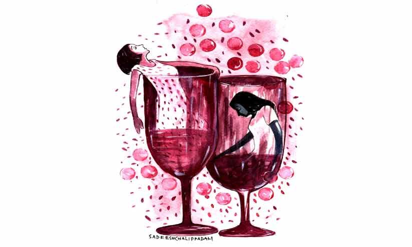 ‘‘മോൾക്ക് കള്ള് കുടിക്കാനുള്ള കമ്പനിയായി അമ്മ. ആരും കേക്കണ്ട.’’ ചിയേഴ്സ് പറഞ്ഞു പാർവതി ഗ്ലാസ് ഉയർത്തിയപ്പോൾ സൗമിനിയും മടിയോടെ ഗ്ലാസ് പൊക്കി. ഒരു സിപ്പ് എടുത്തു മദ്യത്തിന്റെ ചവർപ്പ് പോകാനായി കശുവണ്ടിയെടുത്തു ചവച്ചു.