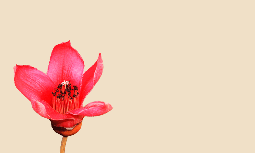 ജനുവരി-ഏപ്രിൽ മാസങ്ങളാണ് പൂക്കാലം. പൂക്കുന്നതിനു മുമ്പായി ഇലകൾ കൊഴിക്കുന്നു. ഇലകൾ കൊഴിഞ്ഞ ചെറുശിഖരങ്ങളുടെ അറ്റത്ത് ഒറ്റയായോ കൂട്ടമായോ ആണ് പൂക്കൾ ഉണ്ടാകുന്നത്. മാംസളമായ പൂക്കൾക്ക് അഞ്ചു ദളങ്ങളും അഞ്ചു വിദളങ്ങളും ഉണ്ട്. ദളങ്ങൾക്ക് കടും ചുകപ്പു നിറം. പുഷ്പവൃന്തത്തിന് 1-2 സെ. മീറ്റർ നീളമുണ്ടാകും. ദ്വിലിംഗപുഷ്പങ്ങൾ. 10-12 സെ. മീറ്റർ വ്യാസമുണ്ടാകും. പൂവിന്റെ മധ്യഭാഗത്ത് ഇടതിങ്ങിനിൽക്കുന്ന കേസരങ്ങൾ 65-80 എണ്ണമുണ്ടാകും. അഞ്ച് കറ്റകളായിട്ടാണ് ഇവ അടുക്കിവെച്ചിരിക്കപ്പെട്ടിരിക്കുന്നത്. കേസരങ്ങൾക്ക് 3-7.5 സെ. മീറ്റർ നീളമുണ്ടാകും. വർത്തികയ്ക്ക് (stigma) കേസരങ്ങളേക്കാൾ നീളമുണ്ടായിരിക്കും.