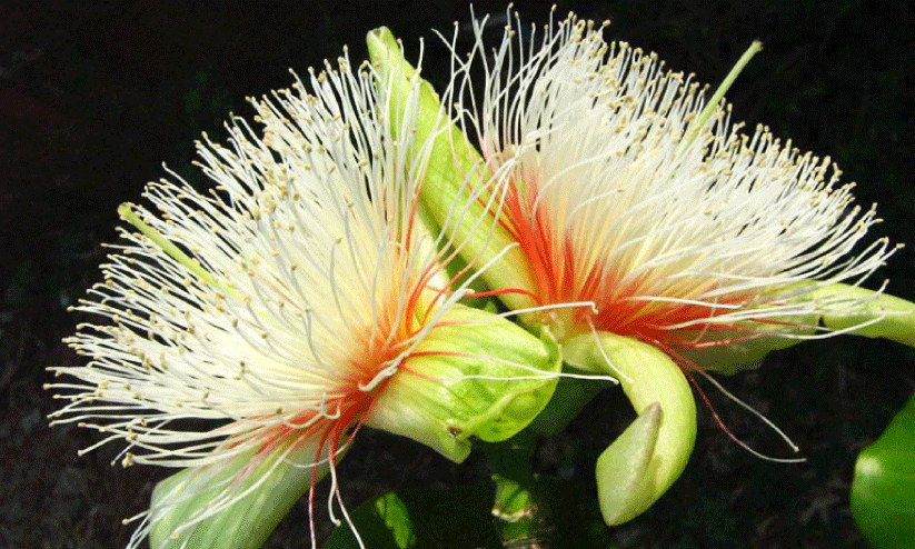 ബാഹ്യദളപുടത്തിനും ദളപുടത്തിനും നാല് ഇതളുകൾ വീതം. കേസരങ്ങൾ അനേകം. കേസരതന്തുക്കൾക്ക് ചുവപ്പുനിറമോ ക്രീം നിറമോ ആണ്. ഇവയിൽ പലതിനും പരാഗകോശങ്ങൾ ഉണ്ടായിരിക്കില്ല. പേരക്കയുടെ ആകൃതിയുള്ള കായ്കൾക്ക് 5-7.5 സെ. മീറ്റർ വ്യാസമുണ്ടായിരിക്കും. വർത്തികയുടെയും ബാഹ്യദളങ്ങളുടെയും അവശേഷിപ്പുകളാൽ കായുടെ അഗ്രഭാഗം അലങ്കരിച്ചിട്ടുണ്ടാകും. മേയ്-ജൂൺ മാസങ്ങളിൽ കായ്കൾ വിളഞ്ഞുതുടങ്ങും. വിത്തുകൾ വഴിയാണ് പുതിയ തൈകളുണ്ടാകുന്നത്.