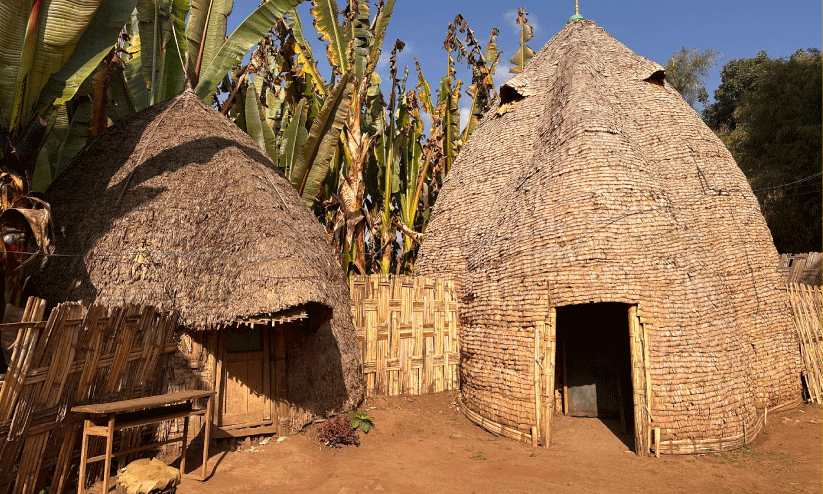 ഡോർസെ ഗോത്രവർഗക്കാർ അവരുടെ കുടിലിനുള്ളിൽ